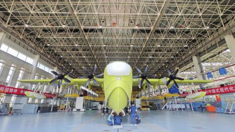 AG600“鲲龙”飞机批产第三架机总装下线并完成生产试飞