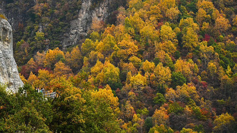 近日,位于河北张家口市蔚县的小五台山辉川景区迎来秋季彩叶最佳观赏期。