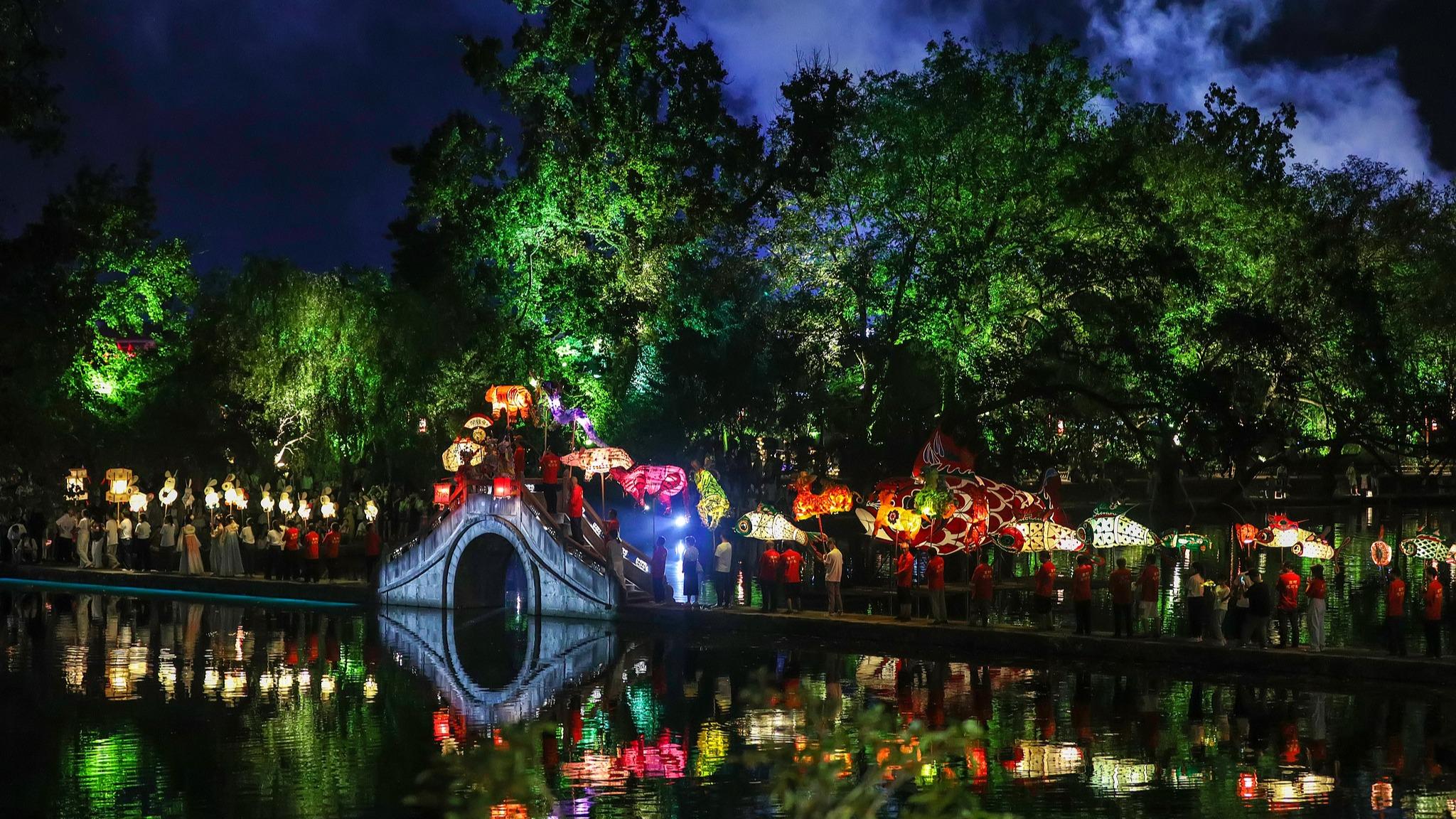 中秋月圆夜 看花灯璀璨