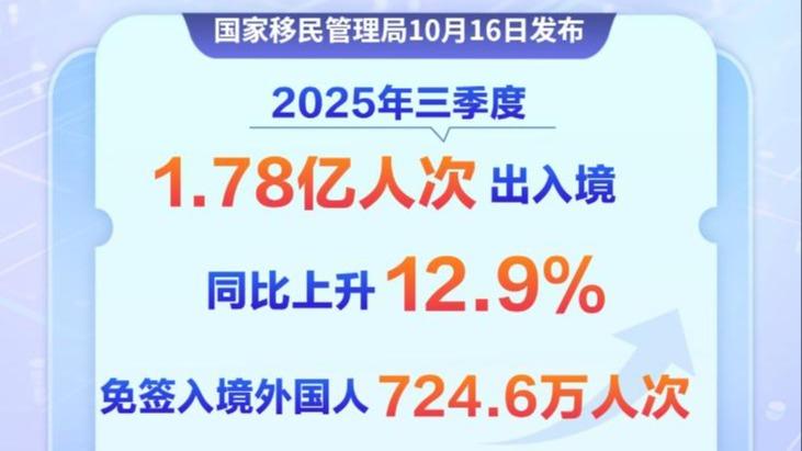 今年三季度1.78亿人次出入境 免签入境外国人同比增48.3%